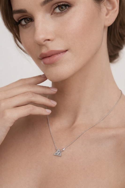 Modern, sleek, and effortlessly stylish — the Iyamy Silver Triangle Pendant Necklace is designed for lovers of minimalist beauty. Crafted from premium 925 sterling silver, this geometric pendant adds a contemporary touch to any outfit. The triangle symbolizes strength, balance, and harmony, making this necklace not just a fashion piece...